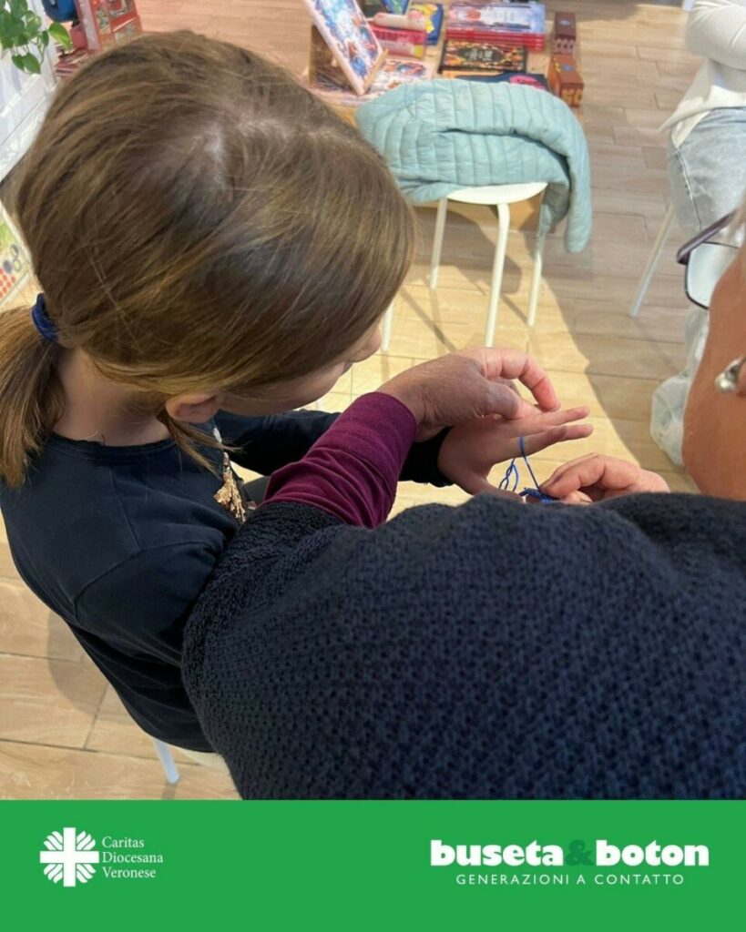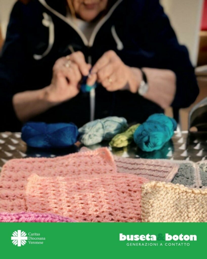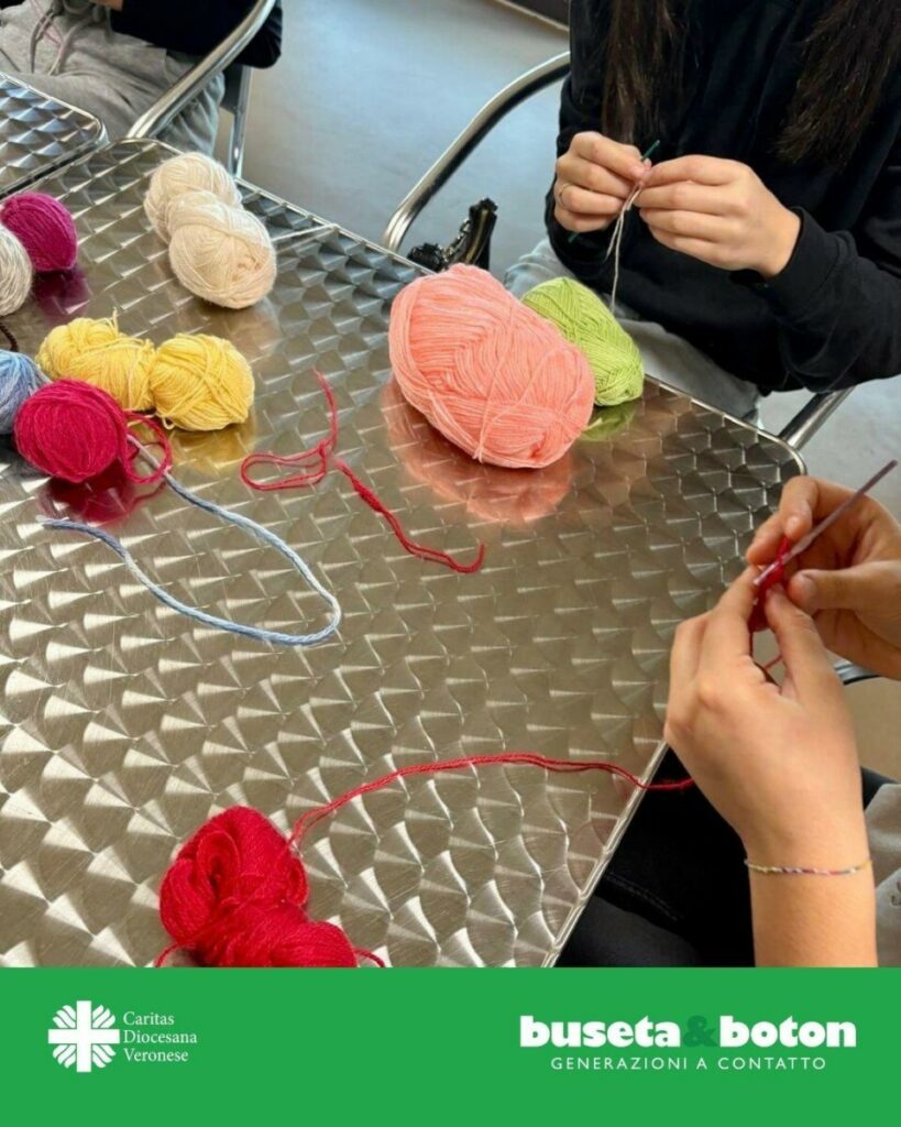 per bambini con necessità di supporto linguistico. In particolare ringraziamo chi ha reso possibile questo piccolo laboratorio di comunità. Grazie a chi ha preso parte al gruppo di sferruzzo del mercoledì di Valmirtilla e alla nonna Giovanna Benedetti che ha messo a disposizione le sue mani sapienti per insegnare ai più piccoli. Grazie a chi ha scelto di sferruzzare insieme a noi al centro Bertacco: ai nonni dello Spazio Nonni che si sono messi in gioco insieme alla cooperativa sociale L’Alveare e a chi ha seguito gli incontri di Ago e Filo del Circolo NOI 5, ai giovani partecipanti del corso di Amigurumi condotto da Chiara. Grazie anche alle operatrici di Caritas Diocesana Veronese, che hanno svolto ruolo di